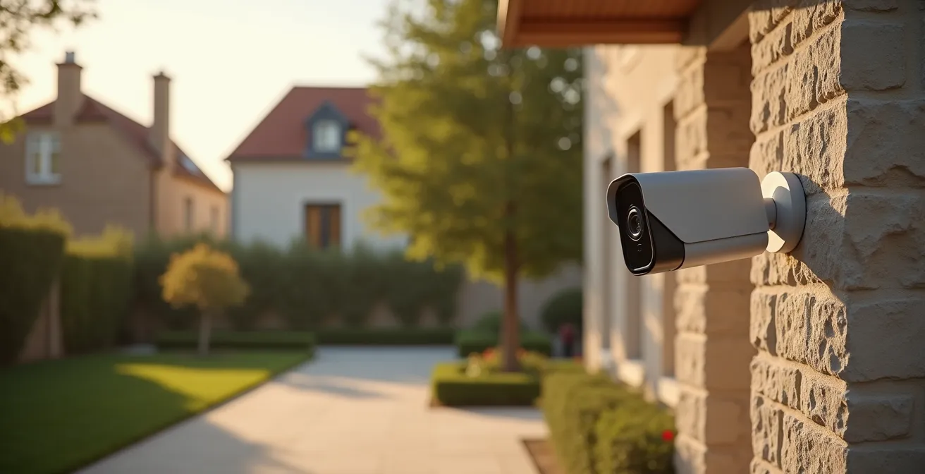 Comme le montre ce positionnement stratégique, la hauteur n’est pas le seul critère. La caméra doit couvrir les points d’entrée critiques : porte d’entrée, porte de garage, baies vitrées. Il faut éviter de la placer face à une source lumineuse puissante (soleil, lampadaire) qui pourrait l’éblouir. Enfin, pour les zones les plus exposées, l’investissement dans un modèle doté d’un boîtier anti-vandalisme (certifié IK10 par exemple) peut s’avérer judicieux pour résister aux tentatives de destruction.